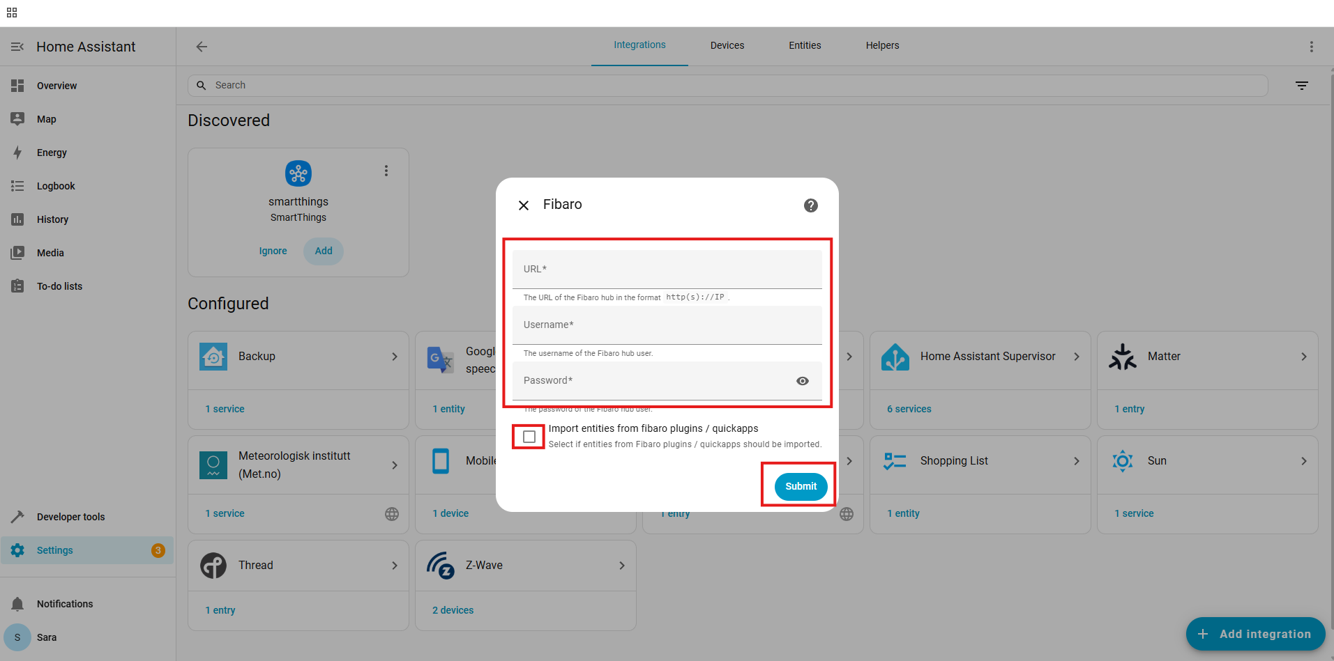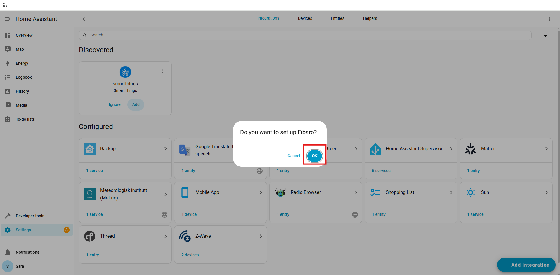 3. A window will pop up asking if you want to set up Fibaro. Click OK.