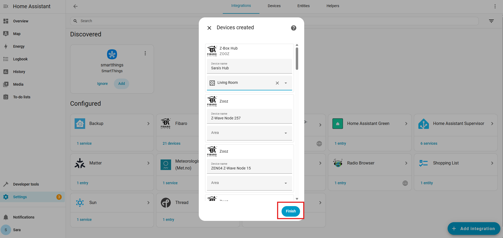 5. You can add the newly imported devices to your preferred rooms, etc. Click Finish when you are done.